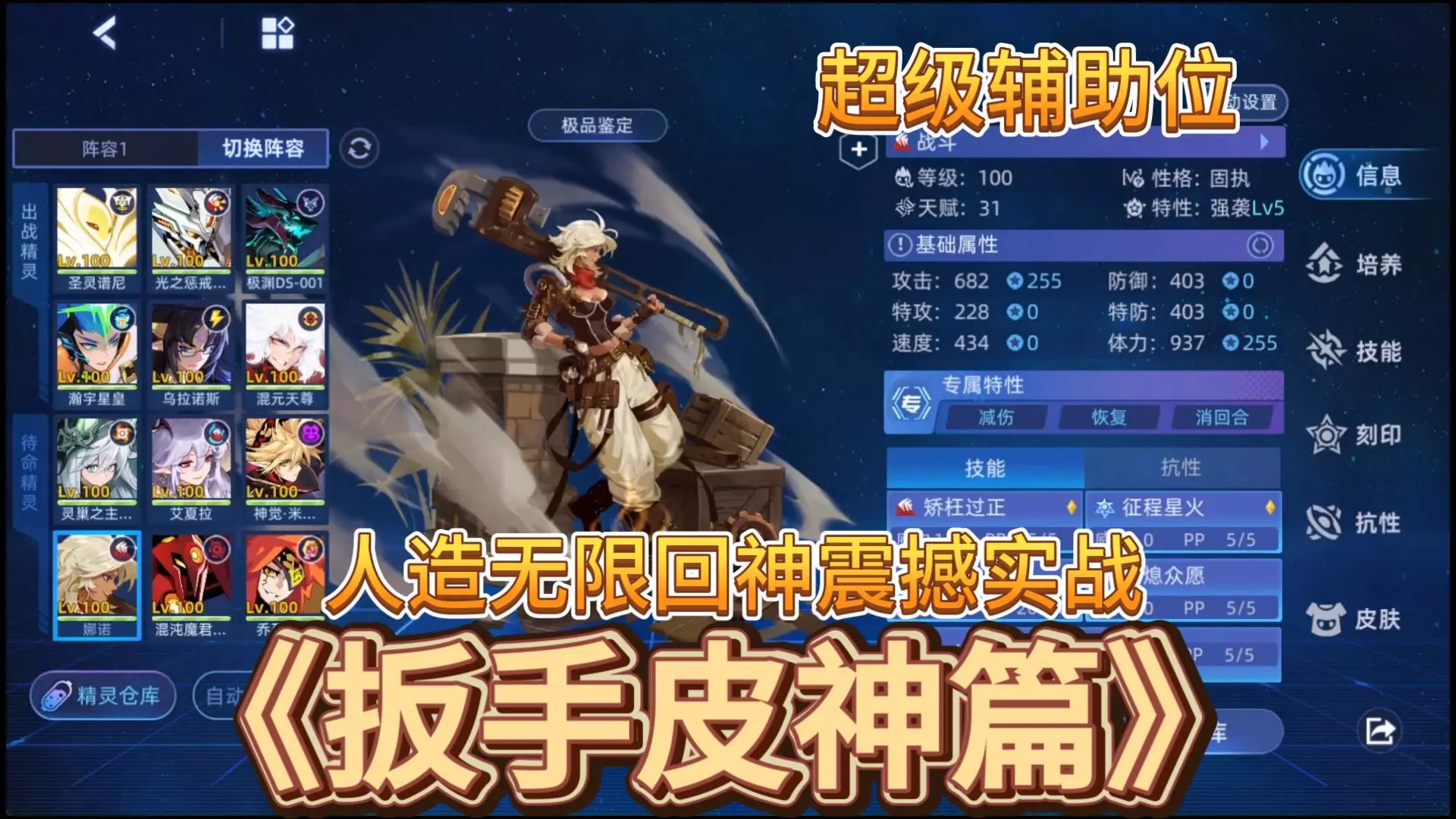 性格固执 特性战意/强袭/坚硬/毒/瞬杀等 双九天爆攻+异元之铭60攻 强化弹控绑控场 抗性55睡