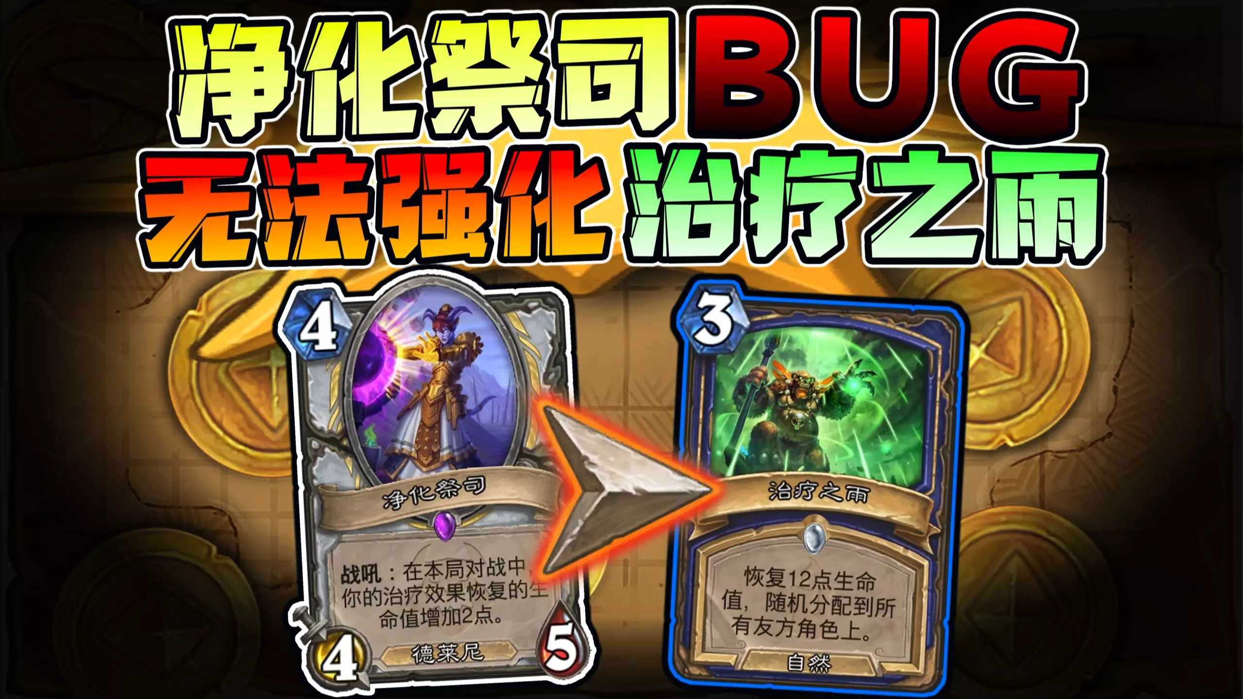 炉石传说35.0.0.237510中的一个bug,【净化祭司】无法强化飞弹类的治疗卡牌,例如【治疗之雨】和【致命诛灭】等 该bug已收录至炉石科技441期的第二…