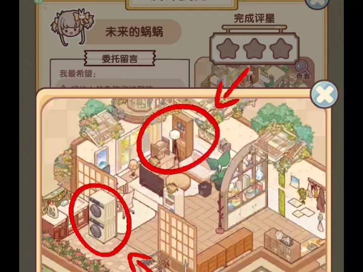 时光回响委托第四期开启,本次是“未来的蜗蜗”的设计委托,要求收纳杂物、打造洗衣生活阳台、打造可休闲的沙发区域,完成不同评星可获取对应奖励,设计时需注意物品用途分区。