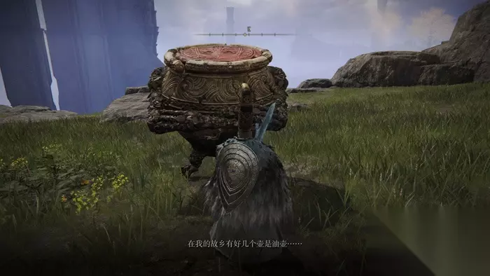 4、第四次在画家的破屋下面,神授塔底下,他又被卡住了(憨憨),这次还是可以拿大型武器揍他,但是揍两次他会说感觉不妙,并说变得滑溜溜才能出来,这时候需要丢一个油壶砸他,然后对话他会夸你聪明,之后再打他三次救他出来。