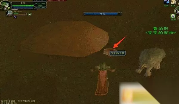 诺格弗格请你帮他找一个饱满的露水腺,让他大喝一顿,解解渴。饱满的露水腺从灌木露水收集者身上可以得到,位置在地图西南角。