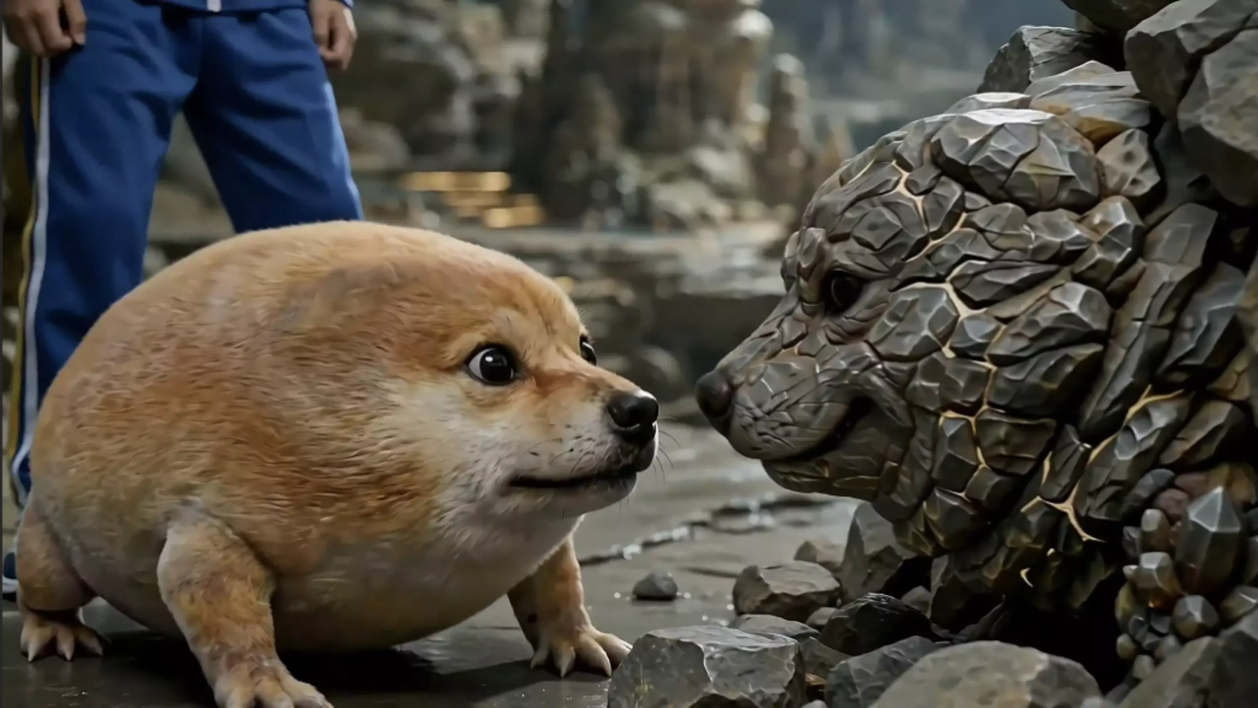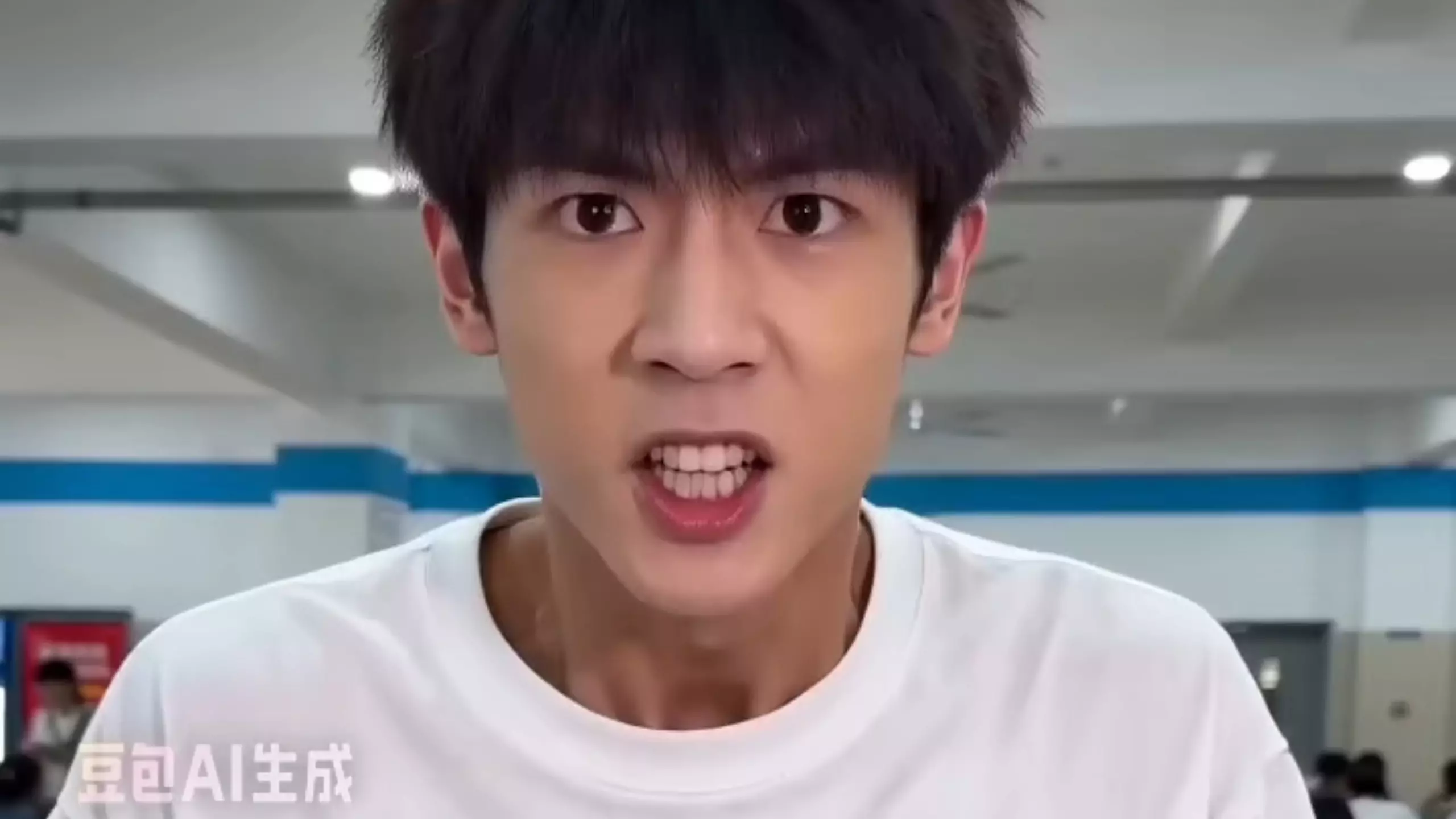 帮我生成一段十秒的影片,竖屏十秒:在食堂里,有一个食堂阿姨,有一个大学生过来了,他要红烧肉,但食堂阿姨对他说:“你玩节奏盒子猫咪版吗?” 学生说:我不玩 然后食…