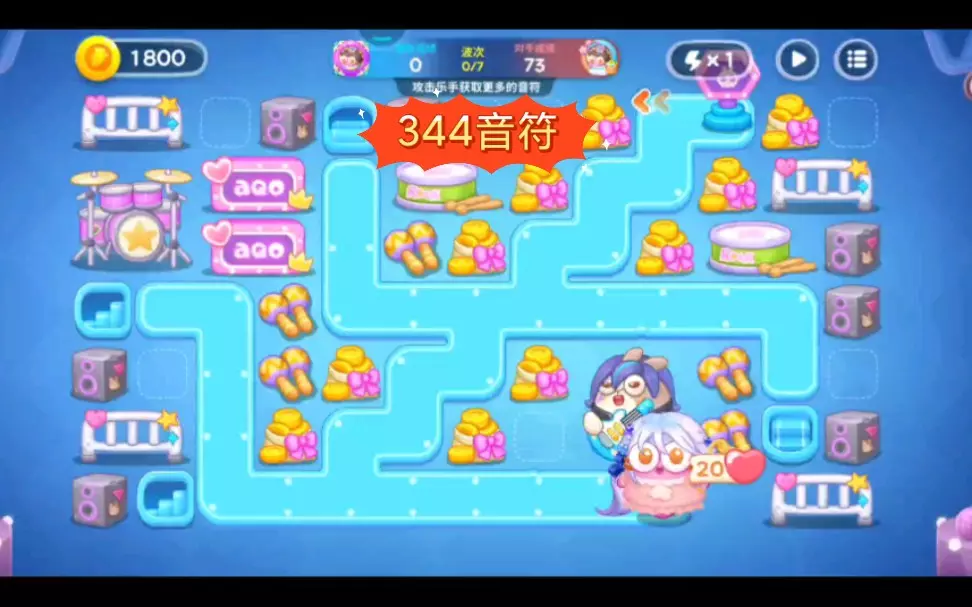 第五波开头到最后时都有一辆兔车,用便便最好是双锁,让每一波兔车留得久一点,最后一波开始,音符至少240才能有机会打满402,但留兔车要留得好才行,我不想说太多了…