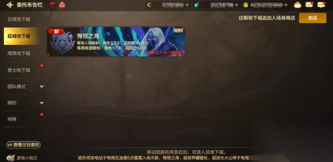 入场要求 ✦ 悔恨之海分为简单、困难和挑战三种难度,可组队进行挑战。每周三重置入场次数,入场时需消耗40点疲劳值。