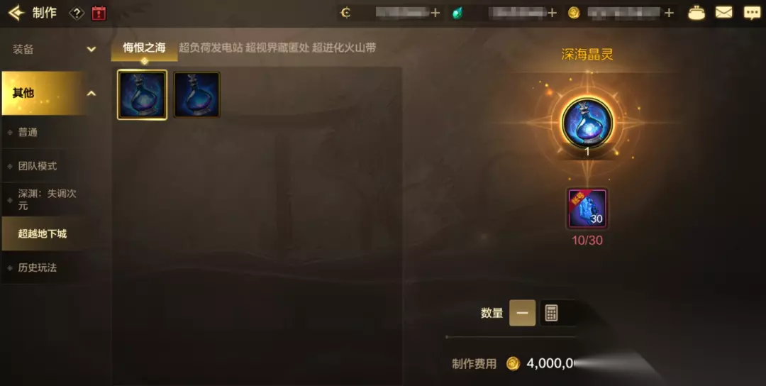 (素材源于测试服,请以正式服上线版本为准) 深海之秘碎片 通关奖励中,深海之秘碎片可用于制作深海晶灵和深海精粹。 消耗深海之秘碎片*30+4000000金币,可制作1个深海晶灵。