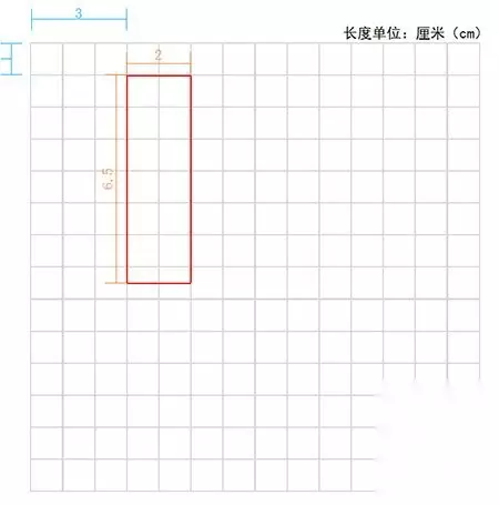 第二步:开始画框 在网格内,图示位置,画一个长2高6.5厘米的长方形。 (注意位置对应)