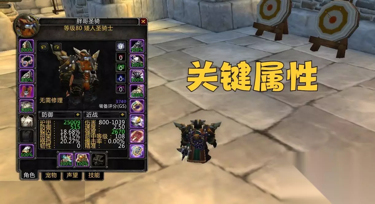 这是一套比较常规的防骑天赋,包含了所有的核心天赋,能够调整的地方也并不多。当然只给惩戒投入5点天赋,然后把13点天赋投入的神圣系的点法,就看玩家自己如何选择了。 大雕文方面必备的有两个:第一个是神圣恳求,效果是3%常驻免伤,第二个是复仇圣印,效果是提供10点精准值。 小雕文方面必备圣疗术雕文,减少CD。其他的都可以随意了。 关键属性 防骑作为坦克职业,关键属性还是很多的,下面我们分别来分析一下: