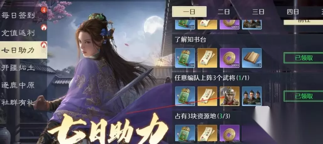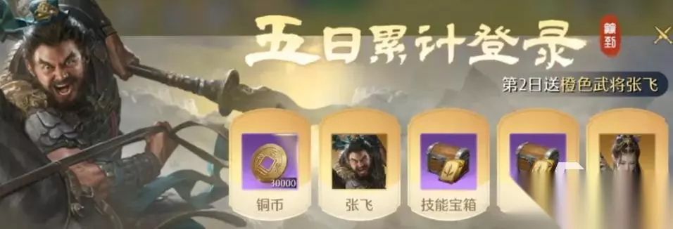 首先是预抽卡,这个只要能参与必定能拿到一个橙将,而且这个活动是常驻的,滚服也能参加,所以大家可以先不急着选,等抽到了合适的武将后根据储备情况来选合适的搭配。然后是开局5天登录送张飞和蔡文姬。