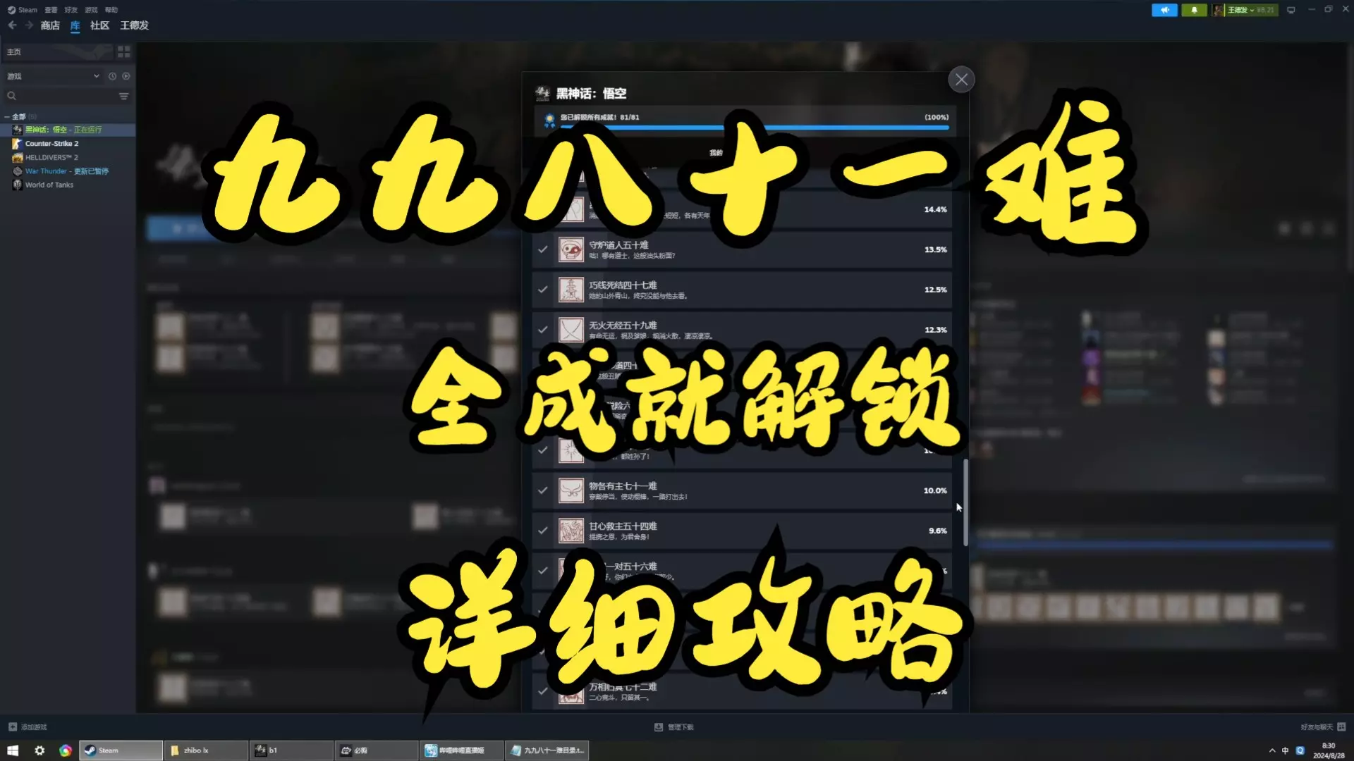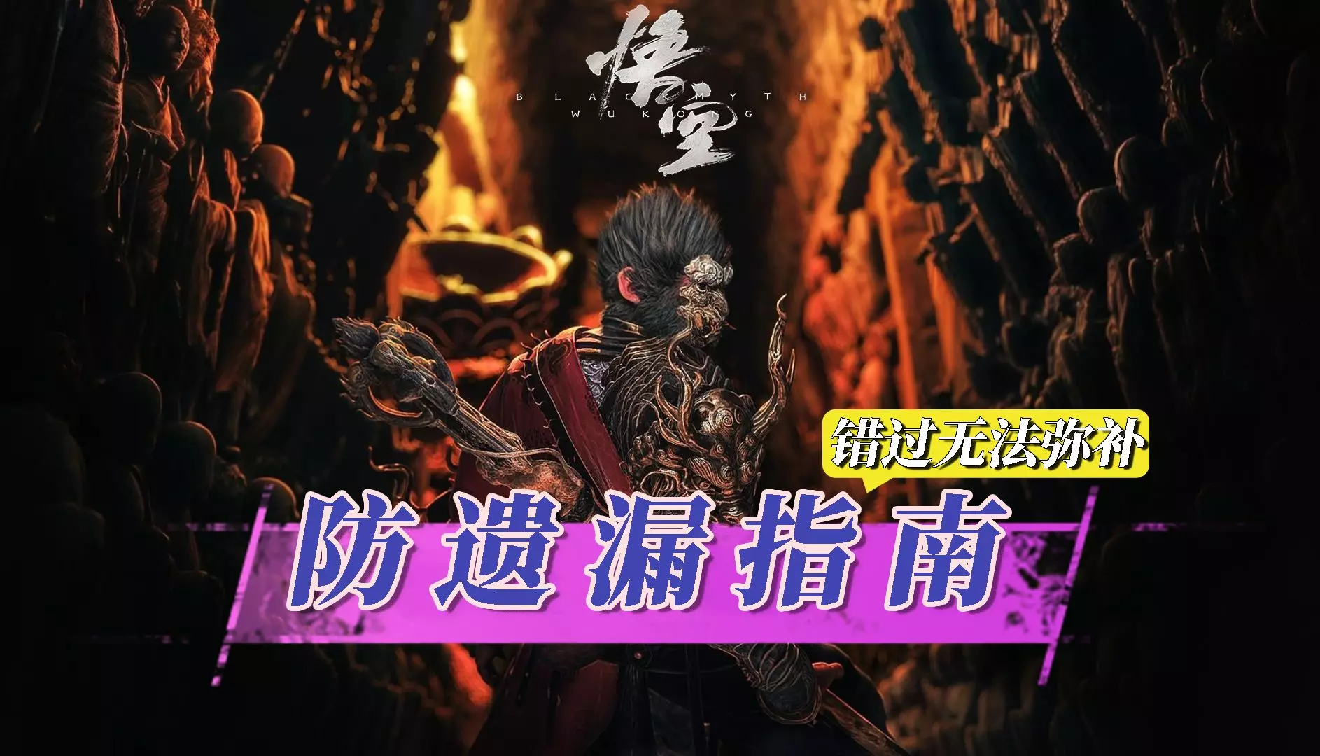 黑神话:悟空全八十一难,主线boss没有展示土地庙,豪华版赠送装备不影响成就。 总结了一下错过不再来的支线和一些注意事项 1.击败金池长老之后无幽魂 2.打沙国王父子要先干掉小的那个国王,不然无沙二郎精魄 3.打石母前先打旁边冒蓝光带精魄的石双双,石母没了她也没了 4.二十四难千里报国如果在牢房没看见尸体,去浮屠界二层左边会遇到一个双头鼠在切肉,干掉就行 5.珍玩吉祥灯只能在击败妙音之前获取,详情请看六十七难 6.到了苦海北岸先去摸蛇头获取龟泪那里击败无量蝠,如果滑雪到了极乐谷就打不了了,能拿到精魄但是无图鉴 7.在碎玉池第一次打黑手道人时打他后背断四只手是一个周目唯一能获得臂甲下毒手的机会,小概率不掉落,建议备份存档再打 8.四十四难糜道人支线要在击败晦月魔君之前完成 9.毒敌大王要在晦月魔君之前打,不然无彩玉葫芦 10.四十七难四妹支线要在击败百眼魔君之前完成 11.五十一难马哥支线要在击败火焰山土地之前把之前对话对完。 如有错漏请指正