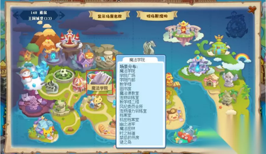 2、找到魔法学院,点击打开小地图。