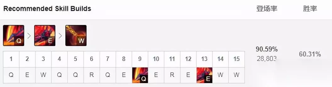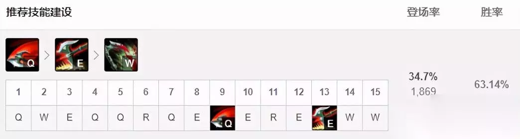 征服者让剑魔在持续作战中更强,凯旋增加团战生存能力,韧性能够减少被控制时间,坚毅不倒可以更好的反杀。血之滋味和贪欲猎手都能增加吸血,非常适合剑魔。 技能加点:主Q副E