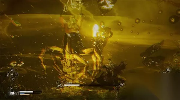 此为百眼毒君的基本攻击技能,通常为前端的双鳌插地,攻击前方;挥剑三下攻击面前。比较好躲,纯物理攻击。输出的时机就在于挥剑第三下后会有一个停顿,并且一阶段用蓄力棍式就能打出短暂硬直。 二阶段(60%血量左右) 5. 三种钻地攻击 百眼毒君血量在60%左右时会使用新招式,潜入地底伺机而动攻击玩家,分为三次钻地。第一次潜入地中后,攻击的前兆为周围冒出电光,如果中招就会吃到投技巧。