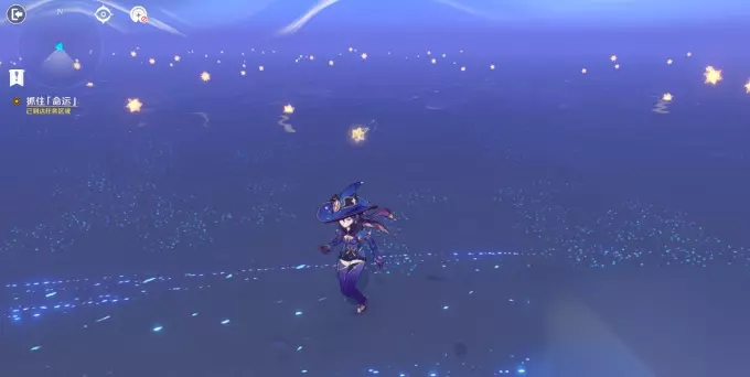 《原神》抓住命运任务攻略 1、在漫天的星空中,有一颗移动的星星就是我们要找的命运之星。 2、建议大家打开元素视野,可以看到它是一直在动的,而且有特效。 3、然后靠近这颗星星,点击抓获即可,注意动作要迅速不然就会飞走。 4、也可以站在原地不动,星星会自动靠近你的身边,这个时候抓取即可。
