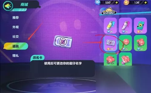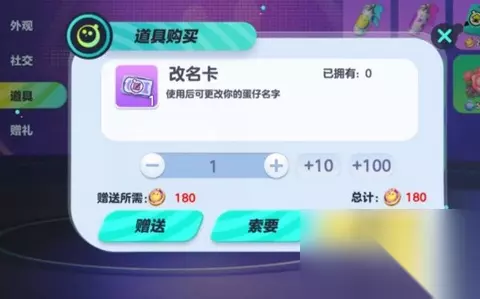 3、在弹窗界面花费180蛋币购买改名卡。