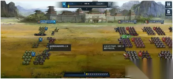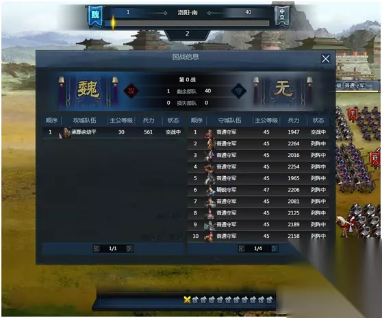 城战中,玩家队列位于屏幕左边,右边为NPC、他国守军队列。
