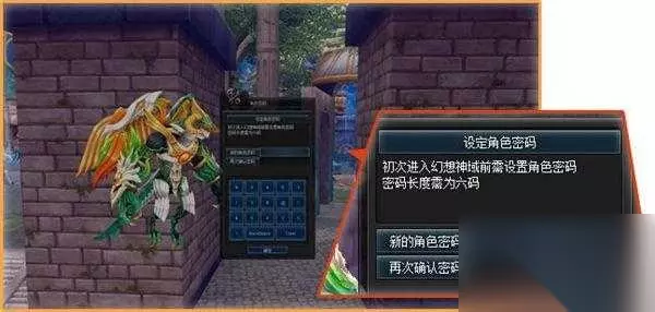 1角色密码:输入6位角色密码 角色选择界面