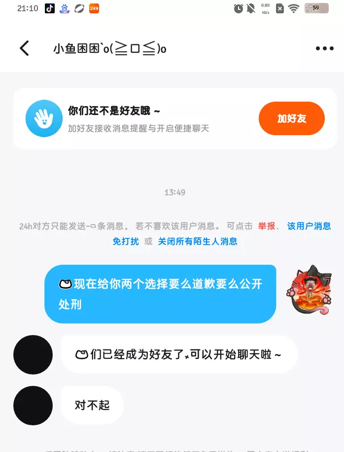 道完歉就拉黑还在背后骂我呗