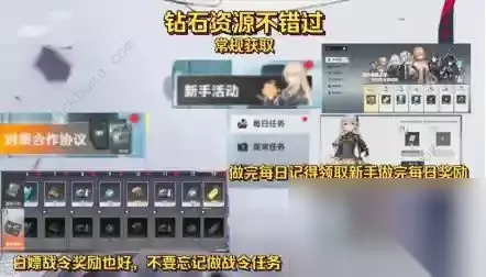 1、在没有开启刻印本,多余的体力可以用于: 刷金币本,因为后期赌刻印词条对于金币花销还是比较大的; 2、而当开启刻印本后,则建议: 在没有开启第3难度的刻印本前,随便刷无论几星都可以,凑三套给主力队伍用,不用给刻印升级,吃套装效果就行。 3、而当开启难度3后,就可以开始刷五星刻印了 ,当然也不用无脑把体力都丢进去,就把每天推完图、升级完角色剩余的体力用来刷即可。 4、当开启联合特勤时:这里建议在没开启最高难度的联合特勤前,只刷S和A级的委托 ,多余体力仍然用于凑齐主力角色需要的五星刻印套装 。 5、最后当特勤开放最高难度且,主力角色刻印套装凑的差不多时 ,我们就可以把全部体力用于刷最高难度的特勤,来获取属性刻印词条的材料,强化我们的刻印。 四、游戏钻石及战略资源不错过最后就是实实在在为大家省钱的游戏钻石资源获取总结,这里将分为:常规获取途径、关卡获取途径。 常规获取途径 首先就是签到,这里除了登入游戏的签到,我们每天不要忘了去新手活动中也签到,获取资源; 再就是每日任务,做完每日任务不仅可以获得角色经验,活跃度宝箱里还有钻石,所以建议大家每天都做到100活跃,里面的用钻石买体力的任务 ,则只建议微氪以上的玩家做 。普通玩家不做也能领完活跃宝箱不用担心。同时每天完成每日任务后,不要忘记去到新手活动里,领取连续七天的完成每日任务的奖励。