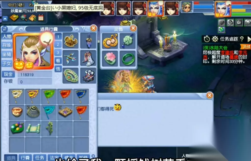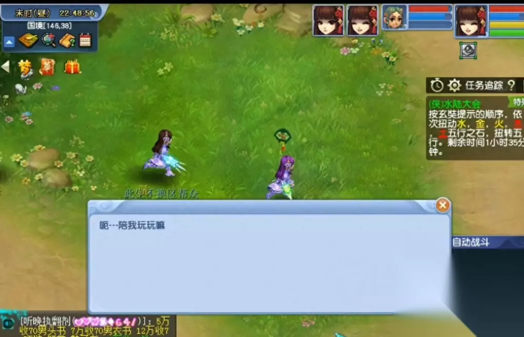 因为我们要刷两次这里的话,只需要三个号组队,剩下2个号在长安那里等着那法宝就行了;这里组队进入战斗之后可以直接逃跑;