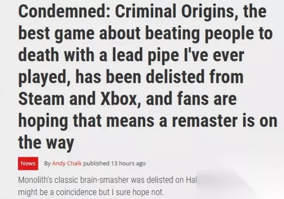 近日,有玩家发现该作已在Steam及Xbox 360的Microsoft Store等平台全面停售。多家行业媒体分析认为,此举很可能意味着版权方正为推出重制版进行前期准备。