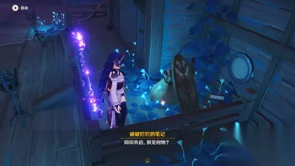 里面发现几块有不同符号的木板,从笔记中得知解谜线索“同印共启,照见何物”,点亮相同的符号的木板,简单来说就是连连看