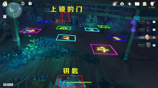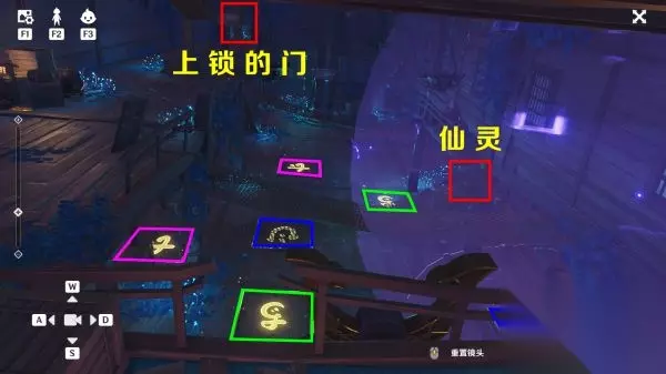下一层同样有连连看,钥匙和门的位置,按下图所示完成解谜,别忘了继续跟着仙灵