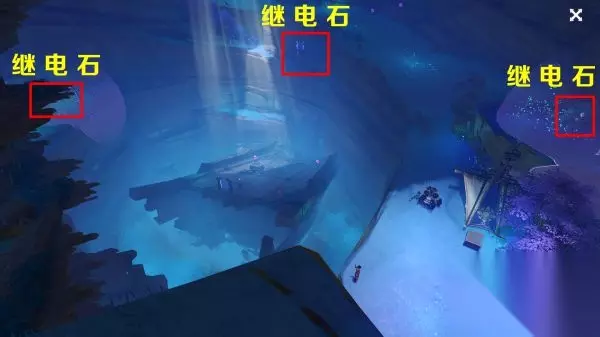 左右两个继电石在若雷结界内,中间的继电石在石堆里