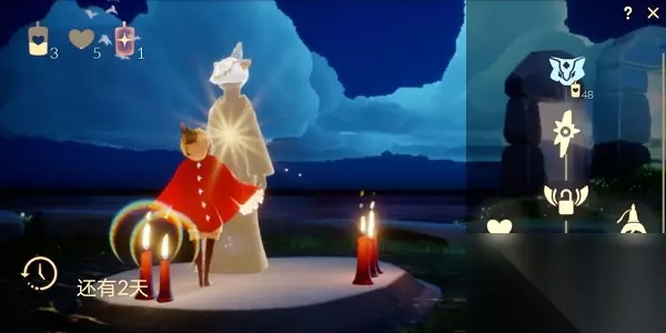 走近后会发现半蹲在地上的狐狸先祖,这个时候就可以向他兑换狐狸面具了。 兑换狐狸面具需要的蜡烛数量是36个蜡烛,但是在这之前还需要先解锁其它道具才可以兑换狐狸面具。解锁第一等级的道具需要消耗5个蜡烛,接下来需要消耗2个暴风蜡烛兑换下一等级的道具。在这之后就可以兑换我们梦寐以求的狐狸道具啦! 兑换一共需要42个爱心蜡烛和2个暴风蜡烛,大家在兑换之前一定要计算好自己的背包里蜡烛数量是否足够。