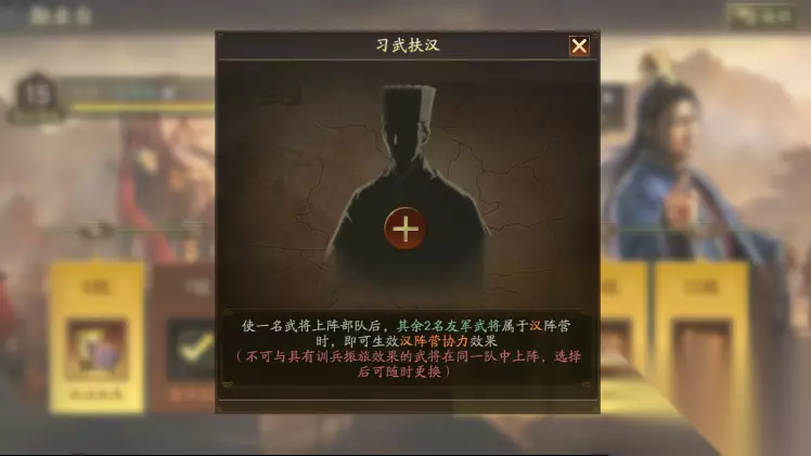 以下武将可在汉室系统中挑选两位转换为汉阵营: