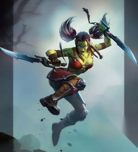 来自于魔兽世界中的半兽人盗贼迦罗娜。创作借鉴了魔兽中盗贼的连击点数机制,使得这个英雄看上去非常具有节奏感。