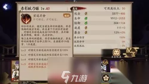场上当前生命比例最低、非召唤物的敌方目标,其生命比例低于生命上限1%,自身提升1%伤害,1点速度。 对锁定目标造成伤害时,有100%概率附加孤立。 解读:类似于鬼切的最后一击AOE,而且会附加一层可驱散的孤立状态—咸鱼体验服的被动,无法被小白或者椒图薙魂之类的分担持续两回合。最后还附加了一个类似吸血姬被动的相反版--对方血最少的单位血越少sp妖刀姬自身伤害和速度越高,而且幅度非常大,若对面只剩40%血,自身可加60%伤害和60点速度,对收割和大招的加成帮助很夸张。 需要注意的是,二技能回合结束时的攻击并非使用普攻,跟犬神一样,是独立技能并非与一技能联动。 3、大招:赤影一瞬 全力砍击敌方目标造成攻击295%伤害,击杀非召唤物的敌方时,获得赤影之息状态,提升15%伤害,上限90%。获得新回合,但不触发锁定。新回合中赤影一瞬将免消耗施放。