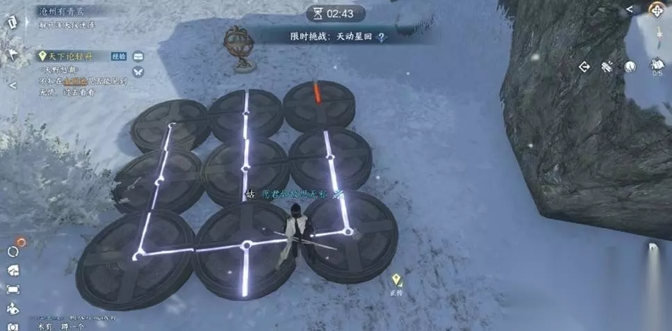 8、前往(1005,1026)完成引导后等待第二次暴风雪来袭,触发场景开始解密浑天仪迷阵,解密图案如下: