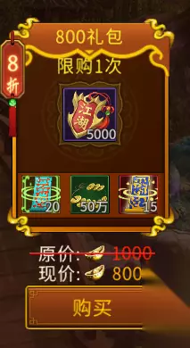 3、800元宝档位 可获取:20土灵符、50万银两、15个加成功率百分之10的幸运符、5000江湖令