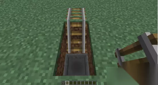 我的世界陷阱箱怎么用 陷阱箱陷阱制作教程: 1、挖两格深的坑,放入漏斗,再挖一格深的坑,放入铁轨。