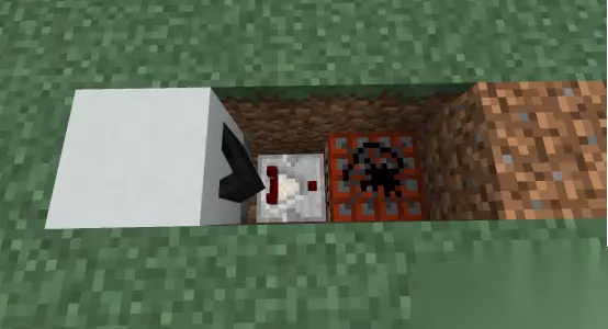 4、把轨道和地面上的方块拆掉,在地下方块周围挖两格深的坑,放入红石比较器和TNT。