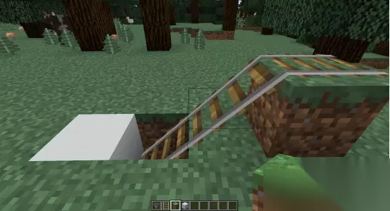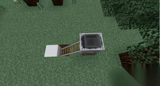 2、在铁轨的尽头放一个方块,在漏斗上面也放方块来遮挡一下。