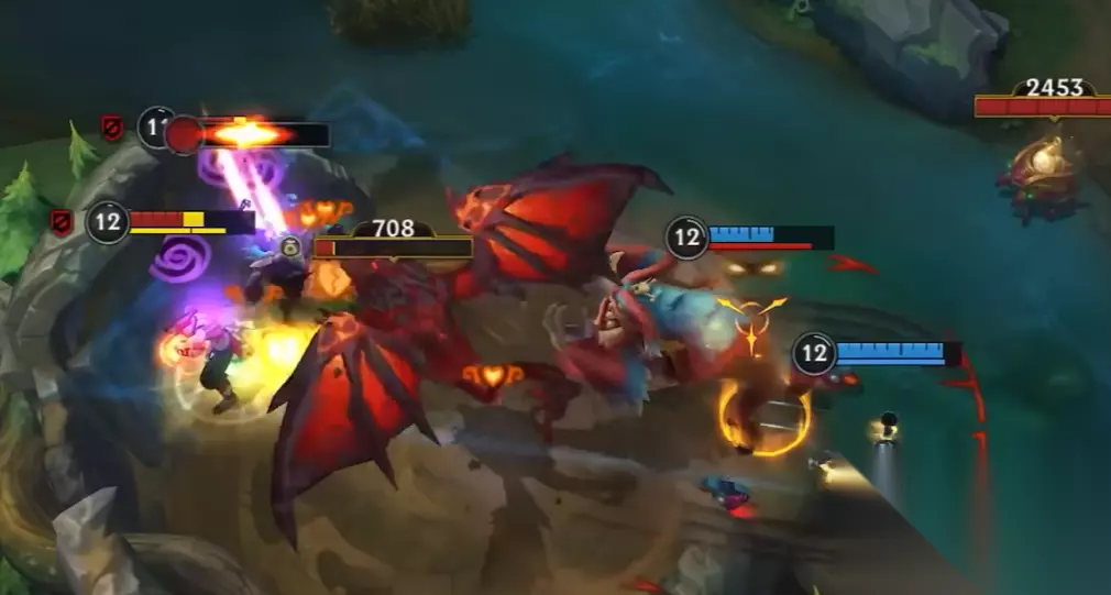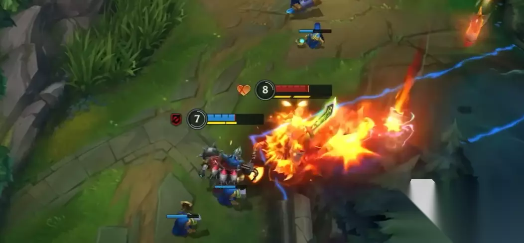 兰博,号称机械公敌,会率先与玩家见面,他是一个非常强势的上单英雄,小技能有喷火范围清兵,鱼叉投掷弹道技能,手动生成护盾并提速,大招是长巨型范围的灼烧。兰博需要控制温度才能获得稳定高额的输出,通常是出AP装。