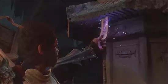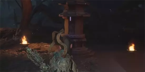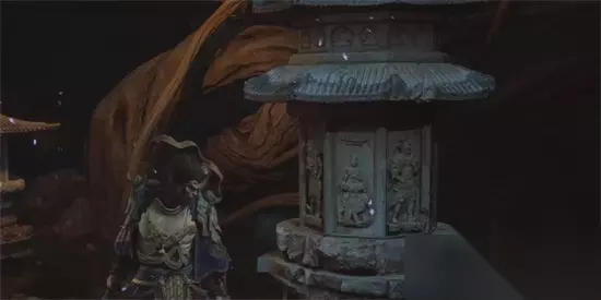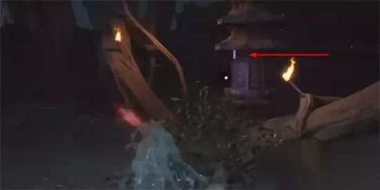2、在击败四姐妹后,来到院子里,即可在下图所示的石塔上找到
