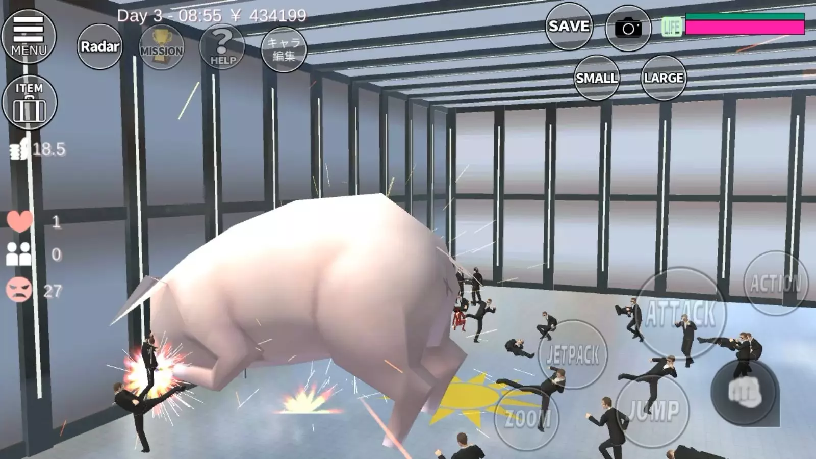 这是《樱花校园模拟器》的趣味玩法分享,玩家让角色给其他角色喂安眠药后,出现了角色身体穿墙、诡异悬挂等离谱又搞笑的bug画面,呈现出游戏里的搞怪场景。