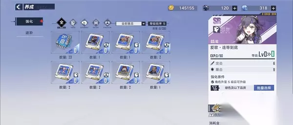 4.而武器就和其他游戏一样强化了就不能喂了。 5.所以我们开服可以放心的强化意志和角色装备,不需要的意志直接喂掉,更换更好的装备直接继承等级。 6.而武器就是按上面的建议,强化高星的SR武器和SSR武器一般都不会浪费。