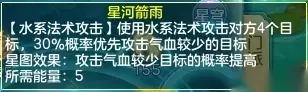 小昕分析: 连星(法术连击)是鬼谷独有的门派特色,触发了法术连击在法术技能中的收益是比较高的。 首先,触发法术连击后作用的单位变多,面伤压制更广。而且由于输出次数的变多,收割残血目标、破保命的几率和效果也大大提高。 其次,法术连击对比于法术暴击的效果,伤害溢出的情况会有所减少。况且鬼谷在法暴武器或相关星穹的效果下,法术连击和法术暴击可以同时生效的哦。 最后,每次法术连击都会多判断一次关联的效果的触发。例如:击退、毒、冰霜等等,因此击退武器、剑魂、雨师变身卡也是非常适合鬼谷的。 星穹之力-星图 星图: 连续使用2回合单体法术或复活当回合成功击倒对面目标后可获得星图状态3回合,该状态下使用特定法术可触发进阶效果。