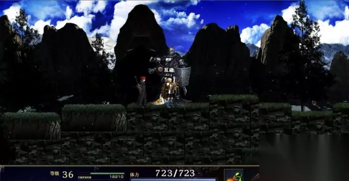 图6 条件达标刚走两步就发生剧情进入BOSS战。这个BOSS战有点难,战斗开始马上换装备,建议给他们分开来打,BOSS攻击手段虽然不多但是挺疼的,刚放雪球的时候建议跳起来先打一下然后再正常输出,如果学会圣属性凭依技独角兽打起来会轻松很多,装备上格挡高一点的盾以备防御(战斗胜利后一定要返回前一区域存档!!!笔者到下一区域失误被干掉了,结果BOSS打了两遍)。 一直向右经历漫长的旅途终于看到了存档水晶和大宝贝商店。继续前进发生剧情进入战斗,这7个士兵非常强攻击力非常高,用蓄力远程攻击攒精力再用凭依技打吧,胜利后一大段剧情,同伴们问主角要不要改变过去,这里选是的话剧情正常进行,选否是BADENDING。