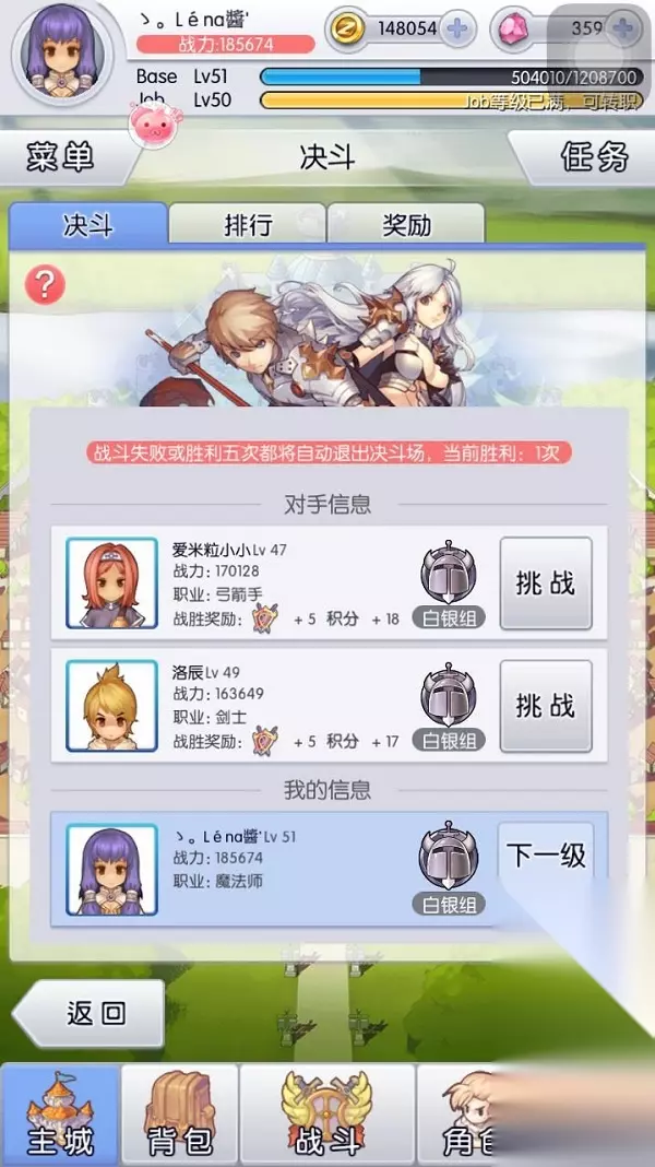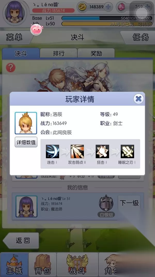 到了第4位,由于他的战斗力比我高,先不要急着打,看一下对方的玩家详情,对比以后看一下输出是否有对方高,如果没有,建议先不急着打,等装备更新,精炼,宝石都更新了一些再打,这样会提高自己的胜利成功率。如果实在是战斗力高出许多的时候,建议大家不要急着打,毕竟能赢一场是一场,如果是最后一张入场券的话,可以留待明天再打,因为隔一天有快速战斗力10%加成,等级和装备的更新,面对于现在战斗力不足或胜算小的局面来说,可以说是最好的选择。