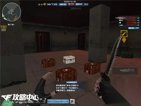 14关又会打开新的门,里面有三个手雷和一个小药瓶,注意合理分配资源,不要和队友为了抢东西抢破头了。这个新的房间还是个小房间,而且小红迷雾的数量也开始大大上升,一定要注意不要被怪物们围住,否则HP会被大大削减。