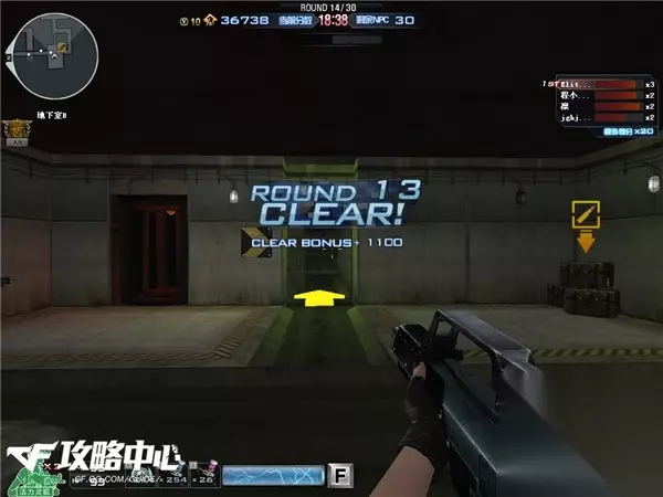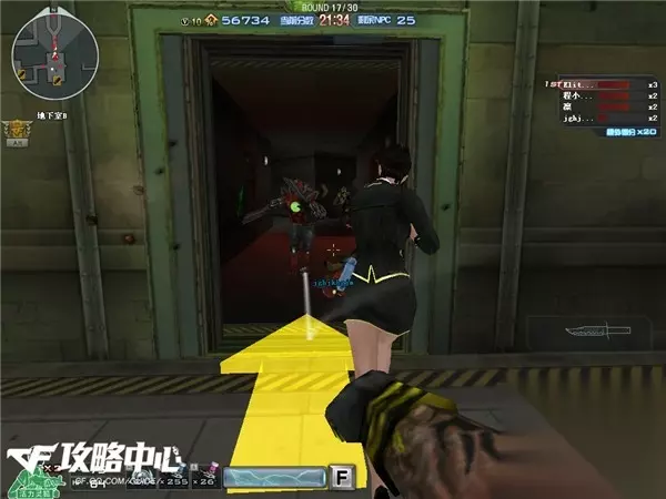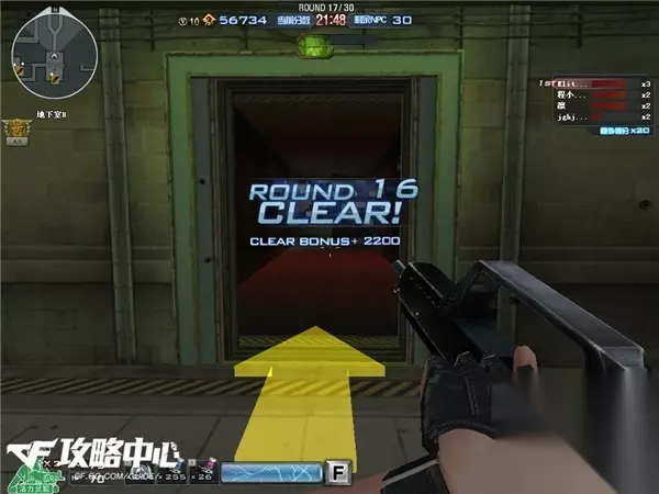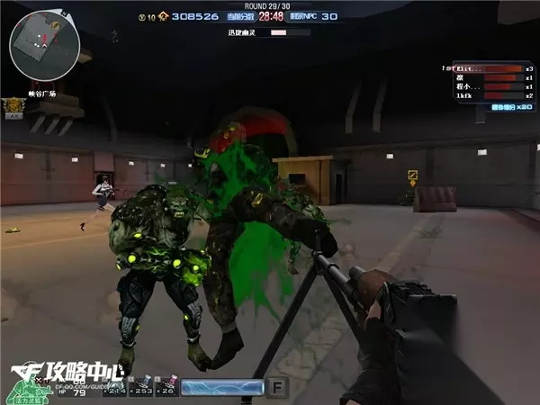 而我们身后房间里刷出来的怪都是些非常弱的小怪,所以这时最好的选择是先对付后方的小怪,再往走廊里扔几个手雷解决难对付的血厚怪。最后剩下的才是四个人冲进走廊里合力干掉所剩无几的几个小红迷雾。