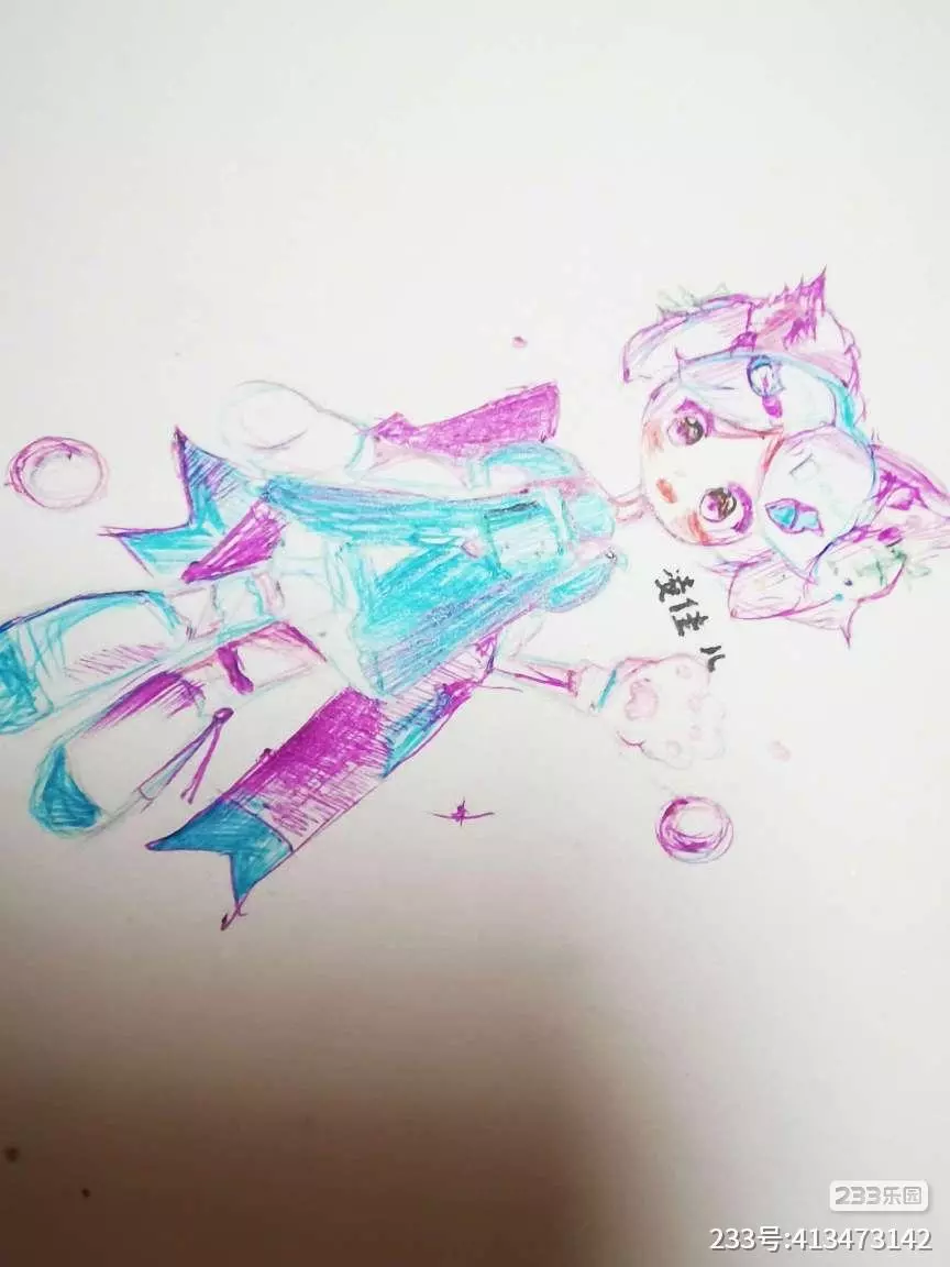第一次尝试用圆珠笔画~效果竟然还不错!最喜欢眼睛那里的颜色~超爱~!(突然发现一日几更也不是不行~)
