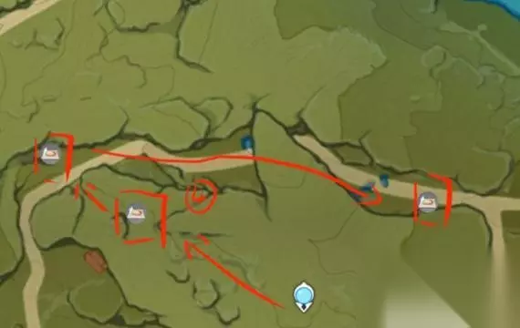 原神蒲公英采集线路图 1、路线分为四个优先度,首先 获取优先度第一的当然是蒙德德城门口。