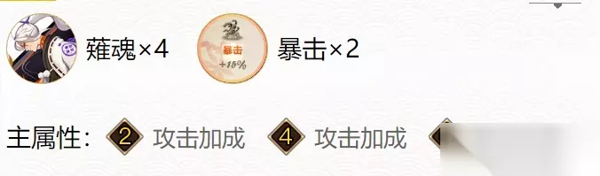搭配推荐二: 薙魂*4,暴击*2 推荐理由: ①戴法比较少见,搭配薙魂,抗伤能力非常强大。 ②搭配薙魂当护盾,辅助流,主属性攻攻爆,帮队友抗伤绰绰有余。