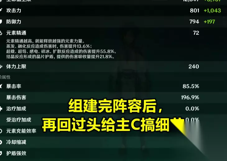 一般来说,副C在队伍中的作用是为目标挂元素,配合主C打输出,作用是提升队伍输出的上限,如行秋、香菱等,应该放在最后培养。 到这里为止,我们已经有了一个勉强够用的队伍,但如果想要打出更高的输出,还需要再提升练度。