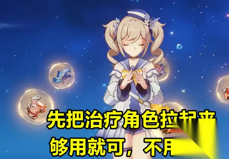 1、先培养治疗角色 在游戏中开始的时候全部资源堆给主C,也是游戏一贯认可的,但只限于游戏前期。在游戏中期,玩家去刷地图还是打副本必须要有治疗角色来提升队伍的续航能力。这里大家推荐芭芭拉和七七。 游戏中的治疗角色不需要有太高的练度,前期升到60级足够了,圣遗物用“少女4件套”,以后可以把七七的圣遗物换成“千岩4件套”,芭芭拉的圣遗物选生命值沙漏、生命值杯子、治疗加成帽子,七七选攻击力沙漏、攻击力杯子、治疗加成帽子。 武器上,芭芭拉可以使用【讨龙英杰谭】,七七没有祭礼剑会比较尴尬。